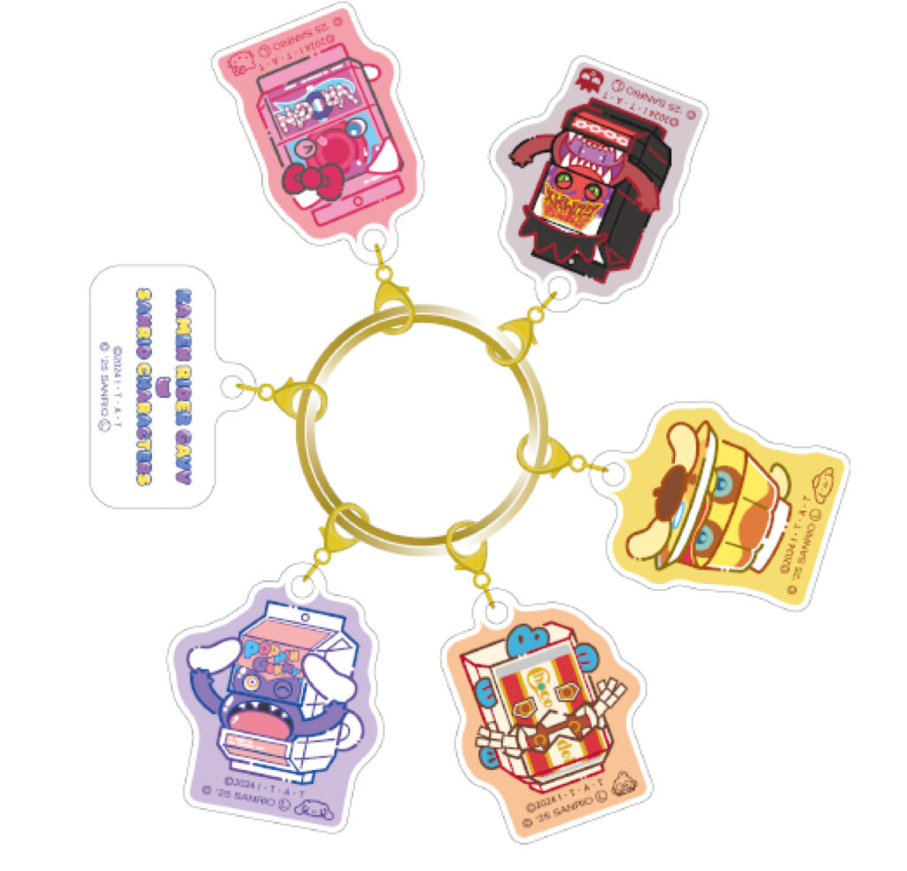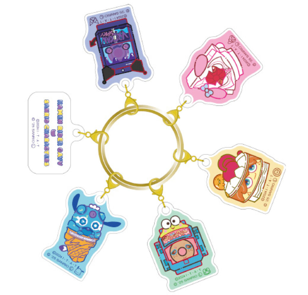 仮面ライダーガヴ×サンリオキャラクターズの6連アクリルチャームが登場! ひとつずつ取り外してチャームとしても使えます。