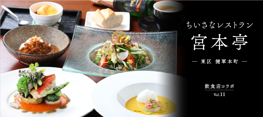 | プロフィール:宮本 孝文(みやもと たかふみ)1975年生まれ。調理専門学校卒業後、19歳で熊本ホテルキャッスルに入社し、レストラン、バンケット、コーヒーショップなど多彩な調理場で経験を積む。20年間、フレンチと洋食の技を研鑽し、2018年3月「宮本亭」をオープン。女性客を中心に、多くの食通を魅了している。 |