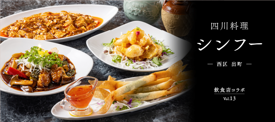 | プロフィール:小川 隆司(おがわ たかし)1974年生まれ。辻調理師専門学校を卒業後、熊本の老舗ホテル内の中国料理店に入社。その後「金絲猴菜館」(熊本)で、『金絲猴の一番弟子』として17年間四川料理の腕を磨く。独立後「シンフー」を北部に開店し、2011年に現在の京町へ移転。 |