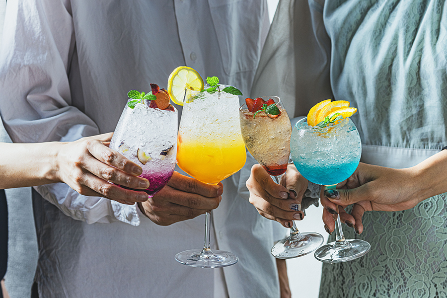 | 実食コメント スイーツやカクテルも主役になるほどのおいしさと存在感。思わず写真を撮る人が多いのも納得です。とくにカクテルは、「柑橘系でさっぱりした、アルコール控えめで」などぼんやり伝えても、見た目も味も120%のものが提供されてきます(経験済み)!もちろんノンアルも可能なので、女性たちに大人気です。 |