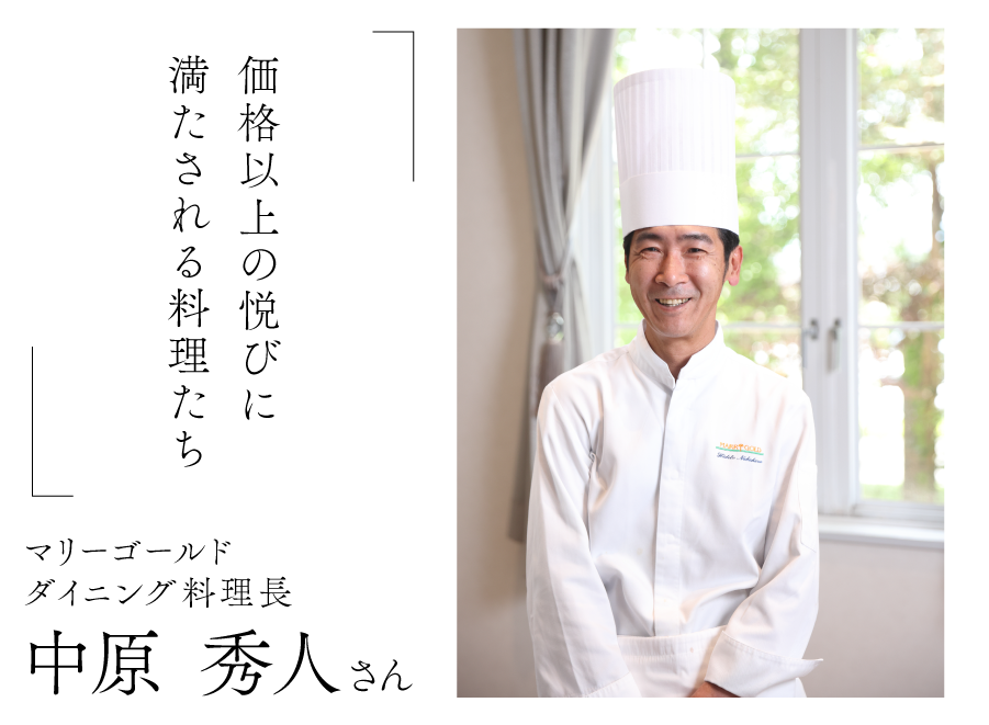 「この値段で、このおもてなしで、この料理で得したね。―そう感じてもらえる時間を届けたい思っています」。そう語るのは、料理長の中原孝二さん。